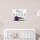 This exquisite wedding seating chart accommodates 50 guests across five tables, with 10 seats per table. The design is a beautiful blend of class, elegance, and romance, showcasing a single long-stemmed deep royal purple rose gracefully reflecting in a tranquil pool of water. The title, rendered in tasteful script calligraphy, warmly invites guests with "Welcome! Please find your table," leaving ample space below for the couple's names and wedding date. This seating chart serves as a charming and practical way to welcome guests and help them locate their assigned seats at the wedding reception, exuding an air of grace and sophistication.