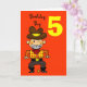 5 year old boy in a cowboy costume, the background colour and the text are customisable. Personalise it!