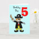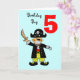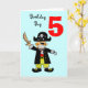 5 year old boy in a pirate costume, the background colour and the text are customisable. Personalise it!