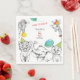 5th Anniversary Party Paper Napkin with fun cute animal illustrations drawn in pencil sketch style.