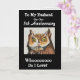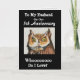 Give an original watercolor painting card of an owl to your husband for a 5th anniversary celebration. "Whoooo Do I Love?"" He will have a hoot and a smile at the funny verse on the inside and the wildlife design showing realistic details in bold colors of brown and black. Fans of nature art will love this card with a unique closeup view of a handsome owl.