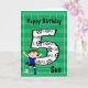 A cute soccer design for the 5th Birthday of a future soccer player or soccer fan, featuring a large number five with soccer balls and the word "goal" written inside it. A young soccer player in a blue and black soccer uniform stands next to the number. Perfect for a 5th Birthday gift or party favour. Visit CelebrationBazaar to view the collection of gifts, party favours and stationery featuing this cute soccer design. Other numbers and team colours available.