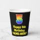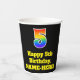 This exciting and colourful birthday-themed paper cup design features a large number “5” with a rainbow spectrum gradient inspired pattern, along with the message “Happy 5th Birthday,”, and a personalised name. It also has a black-coloured background. Vibrant, colourful paper cups like this might be fun to have at a birthday celebration/party being held to honour somebody’s fifth birthday. [~Z0000537]