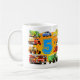 Fifth Birthday Custom Birthday Construction Truck Mug. Nine bright colourful trucks surround a great big number 5! Add your own age! A green and yellow cement mixer, blue pick up truck, yellow bulldozer, orange dumper truck, red road roller, green tractor and trailer, big red firetruck, yellow digger and a builder's red truck! More great ideas for a truck themed kid's birthday party from TruckStore