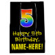 5th Birthday: Fun, Bold, Colourful, Rainbow "5" Medium Gift Bag