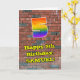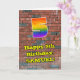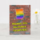 This vibrant and fun urban graffiti and street art inspired birthday greeting card design features a large number “5” with a multicolored rainbow spectrum gradient inspired pattern, along with the message “Happy 5th Birthday,”, and a custom name. The background of the front has a brick wall pattern. The inside has a personalised birthday greeting message, or could perhaps be cleared and left blank if a message is to be written by hand instead. A vibrant, personalised birthday greeting card like this might be used to acknowledge somebody’s fifth birthday. [~Z0000586]