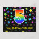 5th Birthday: Fun Stars Pattern, Rainbow 5, Name Postcard