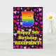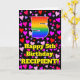The front of this happy and fun birthday-themed greeting card design features a large number “5” with a rainbow spectrum gradient inspired pattern, along with the message “Happy 5th Birthday,”, and a custom name. The background of the front features a pattern of purple, red, and pink heart shapes of various sizes. The inside has a personalized birthday greeting message, or could perhaps be cleared and left blank if a message is to be written by hand instead. An upbeat, personalized birthday greeting card like this might be a fun way to send some birthday wishes to somebody who is celebrating their fifth birthday. [~Z0000551]