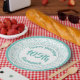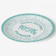 5th Birthday Modern Number Pattern Teal/White Paper Plate