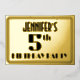 The front of this stylish fifth birthday celebration/party foil invitation card design features an editable name, an art deco look inspired number “5th”, the message “BIRTHDAY PARTY”, and a border pattern consisting of lines. The back features personalised details about the event, such as the venue/location, date, time, and any other important information. Stylish, elegant, personalised invitations like these might be used to invite attendees to a birthday gathering being held in celebration of somebody’s 5th birthday. [~Z0000606]