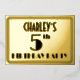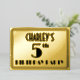 The front of this elegant fifth birthday party foil invitation features a personalised name, a large art deco look inspired number “5th”, the message “BIRTHDAY PARTY”, and a border pattern consisting of lines. The back features personalised details about the event, such as the date, time, venue, and any other important information. Luxurious, stylish, editable invitations like these might be used to invite guests to a birthday party/gathering being held in celebration of somebody’s 5th birthday. [~Z0000592]