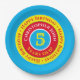 Child's Paper birthday party plates for a 5th Birthday. Birthday party plates with an inscription. Saying a repeated "Happy Birthday". To Celebrate a birthday. Also the name of the child whose birthday it is.