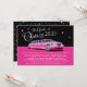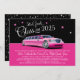 Set the tone for a fabulous 5th Grade Class of 2025 with these glamourous and fun limo Hollywood night out themed pink limo party graduation party invitations. Bright and girly hot pink, black and white colours. A pattern of white stars on a black background dresses up the back of the card.