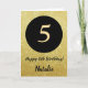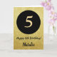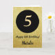 5th Happy Birthday Black and Gold Glitter Card with personalised name. For further customisation, please click the "Customise it" button and use our design tool to modify this template.