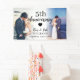Celebrate five years of love with this custom 5th wedding anniversary banner featuring a two-photo collage and elegant script text in the centre. Add names, date, and a message to create a meaningful keepsake for your wooden milestone celebration. Perfect for home decor, event backdrops, or party entrances. To change the photo placement: click on the button to customise it further, click on "crop", and move the image for ideal placement.