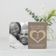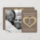 Wooden heart add your own photo 5th wedding Anniversary invitation. Beautiful carved affect wooden heart shape printed graphics fifth Wedding Anniversary invite customise with your own wedding anniversary party details and wedding photo of the happy couple. Original wood heart art graphics and design by Sarah Trett for www.mylittleeden.com and www.mylittleedenweddings.com