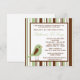 These adorable Neutral Green and Brown Stripe Woodland Bird Animal Baby Shower invitations are printed on a 5x7 sized smooth, vibrant, matte 110lb cover weight paper. Contains 50% recycled content. Perfect for any baby shower, bridal, bachelorette, wedding, or birthday invitation.