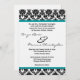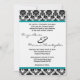 5x7 Black Damask & Teal Linen Wedding Invitation