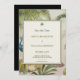 The black backer card adds depth and elegance, making this Save the Date a polished keepsake that pairs seamlessly with the entire Tropical Peacock Palm Wedding Collection — including invitations, menus, programs, table numbers, favour boxes, guest books, and thank-you cards.