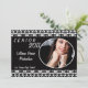 This 5x7 Sized adorable Elegant and Chic Black and White Damask Photo Senior Announcement is both trendy and chic. It's printed on smooth, vibrant, matte 110lb cover weight paper. Contains 50% recycled content. Perfect for your most formal invitations and event announcements. These come with standard white envelopes.