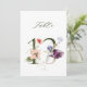 This table number card features a green number decorated with watercolor illustrations of flowers and leaves in peach, pink, red, purple, blue violet and green. This table number is perfect for weddings, graduations, baby showers, bridal showers, anniversaries, and other events.
