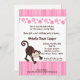 5x7 Girly Pink Pop Monkey Birthday Invitation