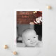 This 5x7 Sized adorable Photo Birth Announcement is both trendy and chic. It's printed on smooth, vibrant, matte 110lb cover weight paper. Contains 50% recycled content. Perfect for your most formal invitations and event announcements. These come with standard white envelopes.