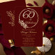 Elegant typography design "60 and Fabulous" 60th birthday party design featuring a rose outline circular frame. Back features a rose outline in gold tone (not gold foil). Front and back background is a dark red burgundy colour.