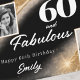 This personalized 60th birthday card features a striking black and gold glitter design paired with two photos, creating a beautiful “then and now” keepsake. The dramatic black background highlights the bold “60” and “Fabulous” script, while soft gold accents add a luxurious, celebratory feel. Customized with photos and name, this card is perfect for honoring a milestone birthday.