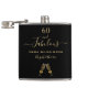 The flask itself is fine. It’s a cheap flask, obviously bought in bulk, however am prepared to overlook that. Given that it is a personalized item, I would have liked to have seen gift boxing instead of the generic packaging. Terrible printing, and/or quality. It’s a cheap, tacky vinyl. It is not cut straight and is also applied in a way that it is overhanging the bottom, causing the glue to catch on items and it will eventually roll and tear, damaging the wrap.