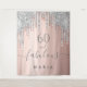 A trendy and glamourous 60th birthday tapestry. A girly rose gold coloured background decorated with faux silver, rose gold and pink faux glitter drips, paint dripping look. With the text: 60 and fabulous. Personalise and add a name. Grey coloured text. The word Fabulous is written with a modern hand lettered style script with swashes.