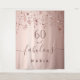 A trendy and glamourous 60th birthday tapestry. A girly rose gold coloured background decorated with rose gold and pink dripping stars. With the text: 60 and fabulous. Personalise and add a name. Brown coloured text. The word Fabulous is written with a modern hand lettered style script with swashes.