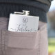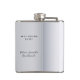 The flask itself is fine. It’s a cheap flask, obviously bought in bulk, however am prepared to overlook that. Given that it is a personalized item, I would have liked to have seen gift boxing instead of the generic packaging. Terrible printing, and/or quality. It’s a cheap, tacky vinyl. It is not cut straight and is also applied in a way that it is overhanging the bottom, causing the glue to catch on items and it will eventually roll and tear, damaging the wrap.