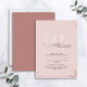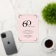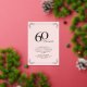 This beautiful invitation features hand lettered calligraphy artfully presenting 'sixty' in luxurious hand lettering against a pink background, adorned with delicate swirls in the corners top and bottom in real rose gold foil, along with the name and the number 60. This image will have all your guests excitedly anticipating your fabulous sixtieth festivities!