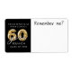 60 Year Class Reunion Name Tag Remember Me Name Tag Stickers. High school or college university class reunion custom colour self-adhesive name tag stickers for home printing or handwriting. The design features faux metallic gold balloon numbers and modern script typography for a 60 YEAR CLASS REUNION, the saying REMEMBER ME?, your school name and class year in your choice of background colour (shown in black) that you can change in EDIT to your school colour. ASSISTANCE: For help with design modification or personalisation, contact the designer BEFORE ORDERING via the Zazzle Chat MESSAGE tab below or email makeitaboutyoustore@gmail.com.
