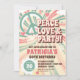 60s Party Invitation – Far out folks, dig our outta sight 60s party invitation. Featuring psychedelic colours and a mellow peace sign. Just the perfect invitation to show everyone your free hippie spirit still knows how to get a groove on. Have a gas and don’t forget to let your freak flag fly. Groovy man! Peace, Love and Party!