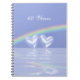 Notebook with my design of two diamond hearts floating on the water under a rainbow. Customisable text says "60 Years".