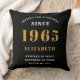 A personalised classic throw pillow design for that birthday celebration for special person born in 1965. Add the name to this vintage retro style black, white and gold design for a custom birthday gift. Easily edit the name and year with the template provided. A wonderful custom birthday gift. More gifts and party supplies for that party celebration available in the store.