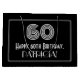 This Roaring Twenties appearance inspired vintage style birthday-themed gift bag design features a large art deco look inspired number "60", the message "Happy 60th Birthday,", a customisable name, and a border pattern consisting of thin lines. It also has a black-coloured background. A gift bag like this might be used when wrapping a birthday present or gift being given to somebody who is celebrating their sixtieth birthday. [~Z0000497]