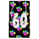 Colourful 60th birthday balloon bouquets with party confetti on black background.