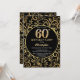 60th Birthday Black and Gold Floral Pattern Invitation