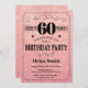 60th Birthday Black and Pink Rose Gold Glitter Invitation