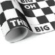 Make your gift stand out at a 60th birthday party or sixtieth milestone anniversary celebration with wrapping paper featuring a bold black and white chequered pattern with the words "The Big Six Oh" repeating in alternating white on black and black on white text.