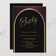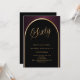 An elegant 60th birthday invitation. A black and burgundy background with a golden arch on the front.