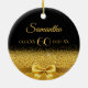 Elegant, classic, glamorous and feminine. A faux gold colored bow with golden glitter and sparkle, a bit of bling and luxury for a 60th birthday. Black background. Templates for her name, age, date of birth and anniversary date, both on front and back. Golden letters.