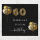 For an elegant 60th birthday party. A black background, decorated with balloons. Number 60 is written with a trendy balloon style font, leopard pattern. Personalise and add a name and a date. The word birthday is written with a modern hand lettered style script with swashes.