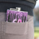 The flask itself is fine. It’s a cheap flask, obviously bought in bulk, however am prepared to overlook that. Given that it is a personalized item, I would have liked to have seen gift boxing instead of the generic packaging. Terrible printing, and/or quality. It’s a cheap, tacky vinyl. It is not cut straight and is also applied in a way that it is overhanging the bottom, causing the glue to catch on items and it will eventually roll and tear, damaging the wrap.