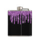 A gift from friends for a girly and glamourous 60th birthday girl. A classic black background with purple faux glitter drips, paint dripping look. Personalise and add a name.The text: The name is written in violet with a modern hand lettered style script. Age 60 is written with a trendy balloon style font.