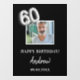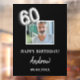 For a 60th birthday party. Black background, white text. Personlize and add a high quality photo, text, name and date. Number 60 is writen with a faux silver balloon style font.