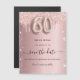A girly and trendy Save the Date card for a 60th birthday party. A blush pink gradient background decorated with rose gold and faux silver glitter drips,sparkles. Personalize and add a date and name/text. The text: Save the Date is written with a large trendy hand lettered style script with swashes. Number 60 with a balloon style font.